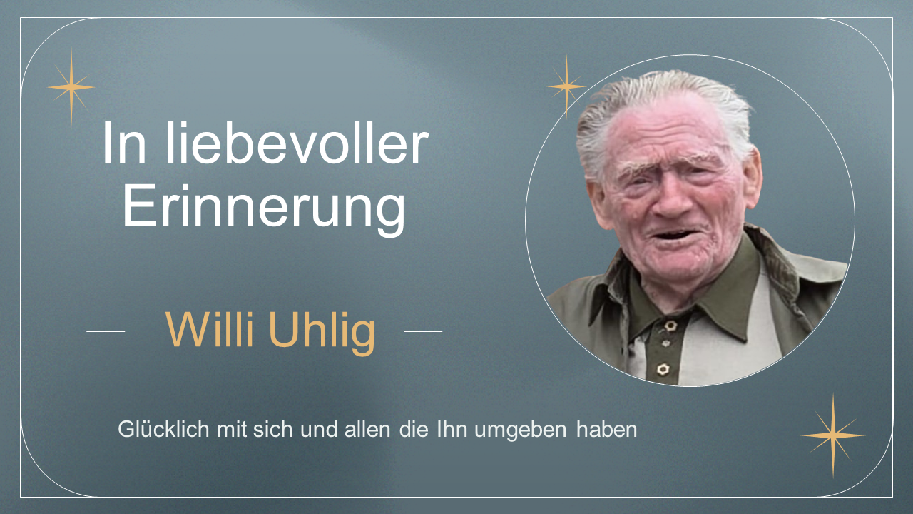 Ich danke allen, die bei der Trauerfeier dabei waren und noch auf dem Friedhof dabei waren. Diese Webseite ist entstanden, um nochmals oder auch erstmals von Willi Abschied zu nehmen. Tragen Sie sich gerne in das Kondulenzbuch ein.